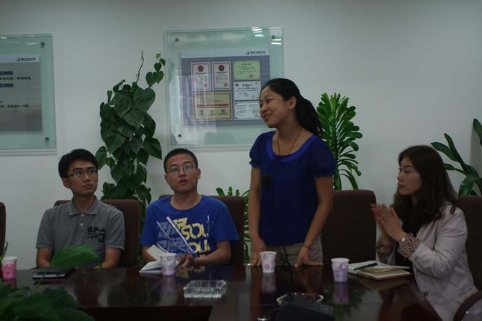 会上,新老员工热烈互动。院办主任张黑山同志介绍逐一介绍参会人员。各新员工随后依次发言,畅谈入职感想。2010年毕业入职,且因表现出色被评为2011度院级先进工作者的“老员工”代表曹国寻同志作了典型发言,介绍更快融入新的团队、向老同事们学习、做一名合格员工的体会。