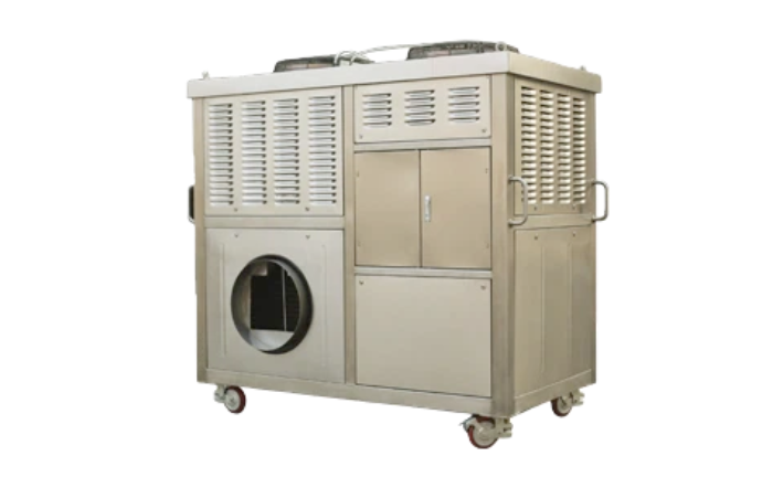 谷物冷却机是实现绿色低温储粮的关键设备,将空气经过冷却和湿度调节,向仓库内吹入适合所存放谷物特性的一定温度和湿度的空气,满足对整仓粮堆进行降温冷却作业要求,实现谷物的低温储藏。